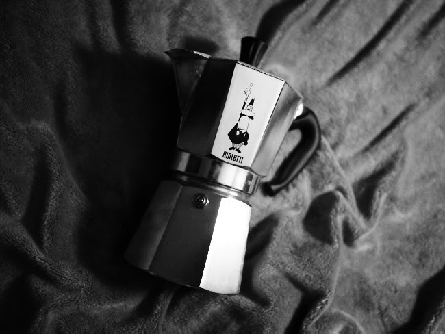 Bialetti stovetop espresso maker. Steam powered coffee. Think steampunk meets the espresso generation. Three simple parts, makes great espresso, genuine Italian. I remember the first time I used it, one recent summer morning. My wife, walking back from the gym, rounded the corner from the sidewalk into our driveway, and could already smell the espresso from outside. Elegant simplicity personified. It's nice to brew up a pot prior to sitting down to write.